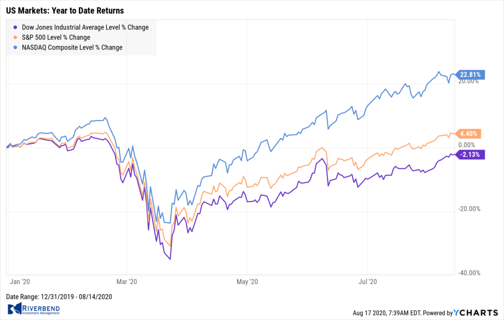The major indexes posted gains for the week, lifting the benchmark S&P 500 index to within roughly 0.2% of its all-time high from February.
