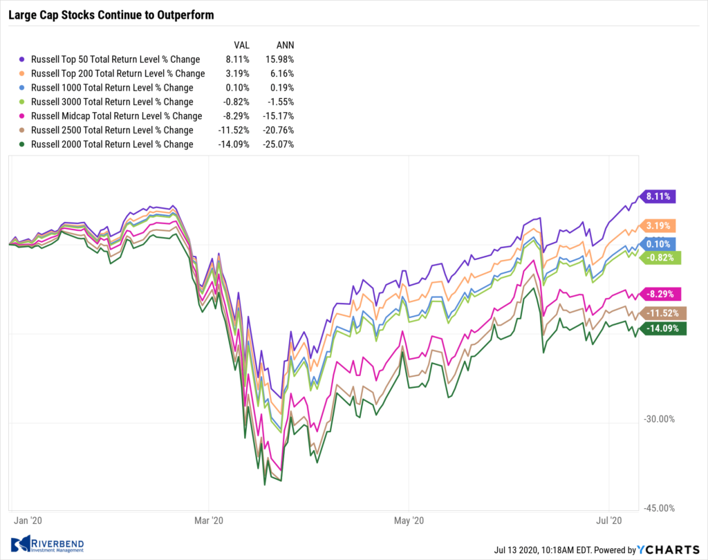 By market cap, the large cap S&P 500 finished the week up 1.8%, while the mid cap S&P 400 and small cap Russell 2000 retreated -0.3% and -0.6%, respectively.