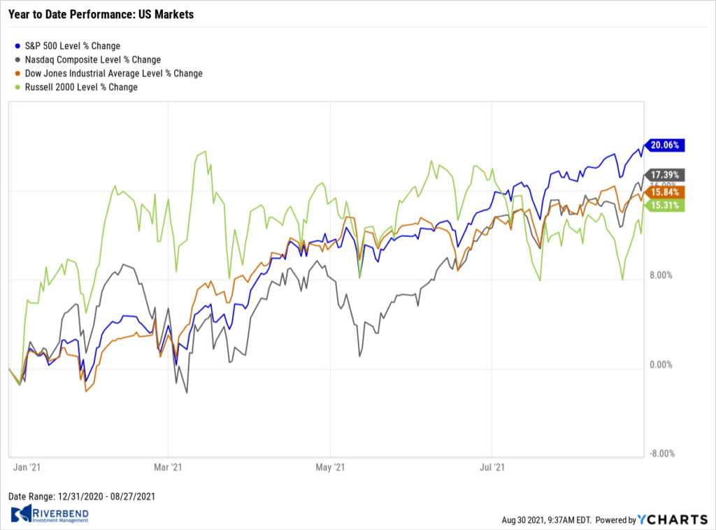 The Dow Jones Industrial Average rose 336 points finishing the week at 35,456, a gain of 1%. The NASDAQ rallied 2.8% finishing at 15,130.