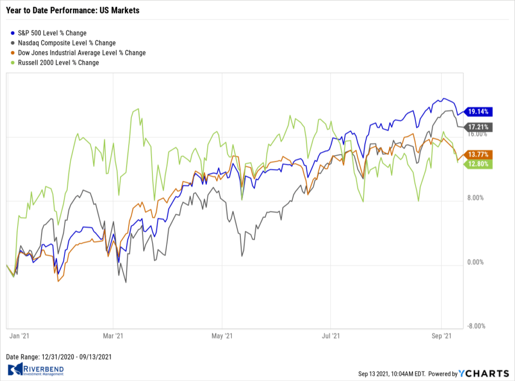 The Dow Jones Industrial Average shed 761 points to finish the week at 34,608—a decline of -2.2%. The technology-heavy Nasdaq Composite gave up 248 points to 15,115—a decline of -1.6%.