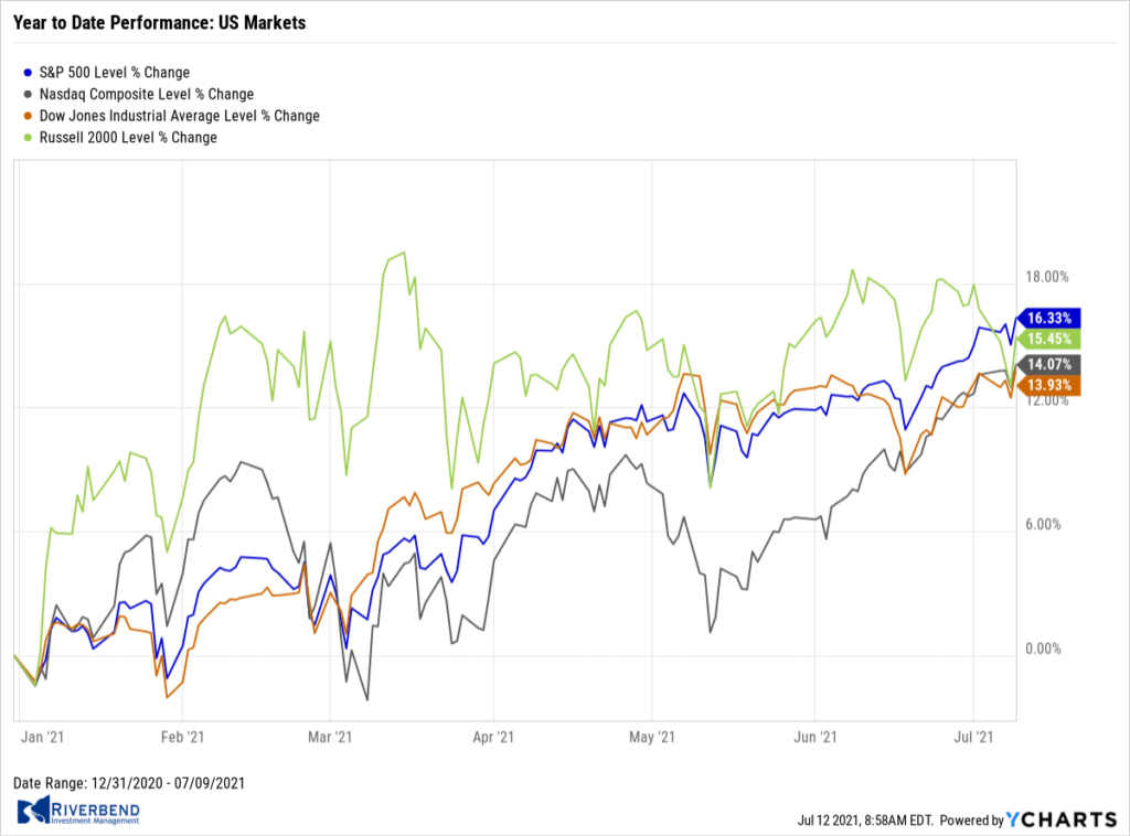 The Dow Jones Industrial Average finished the week up 84 points to 34,870, a gain of 0.2%. The technology-heavy NASDAQ Composite rose 0.4%.